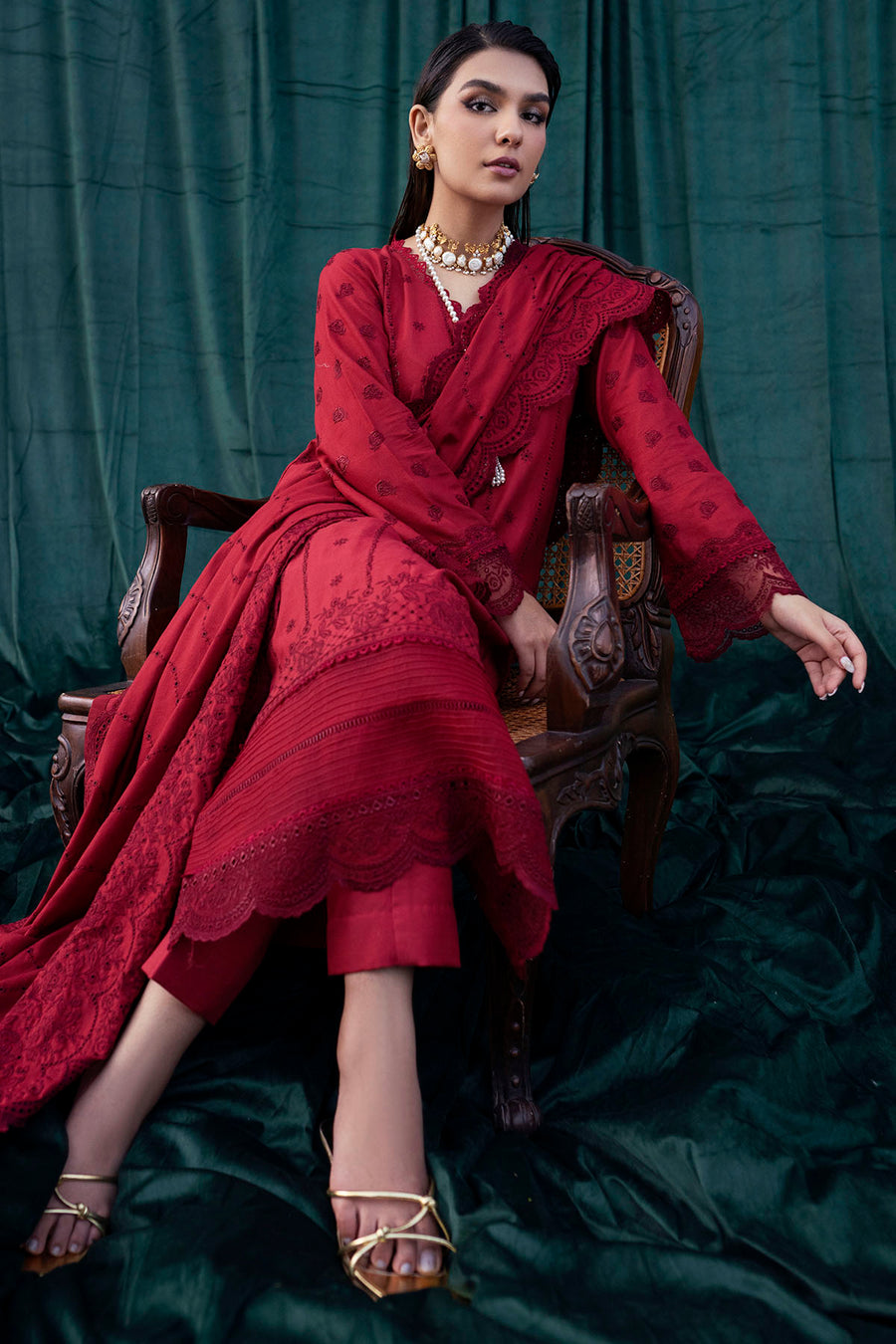 Embroidered Lawn Shirt with Patches Embroidered Lawn Sleeve Embroidered Lawn dupatta Dyed Lawn trouser
